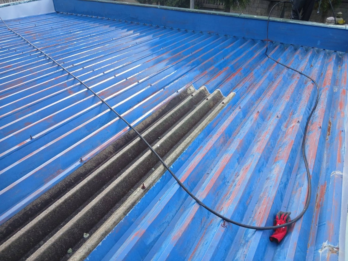 今回は、弊社社長の近隣にお住いの方からのご依頼で、ガレージの折半屋根の塗装を行いました。
